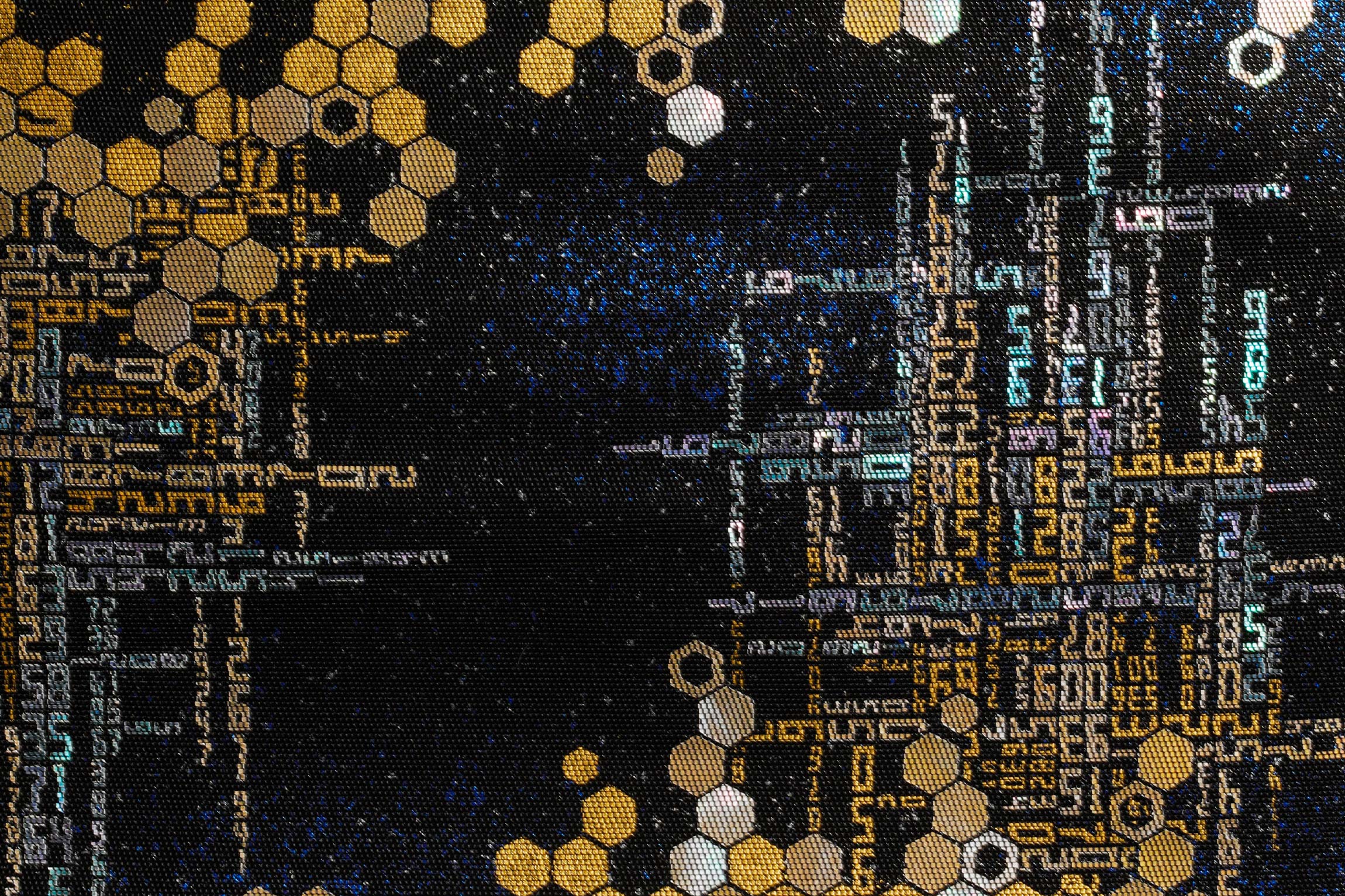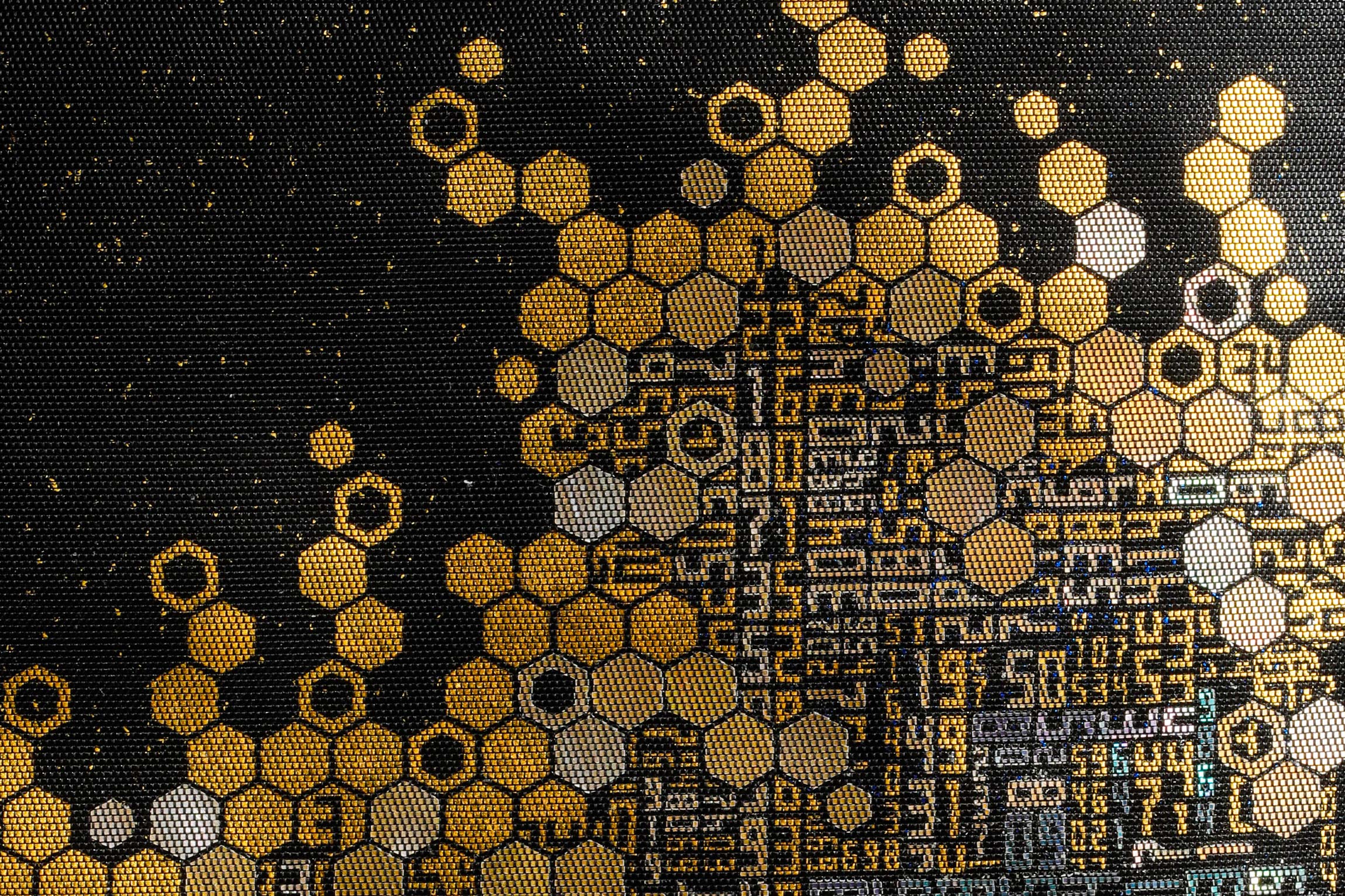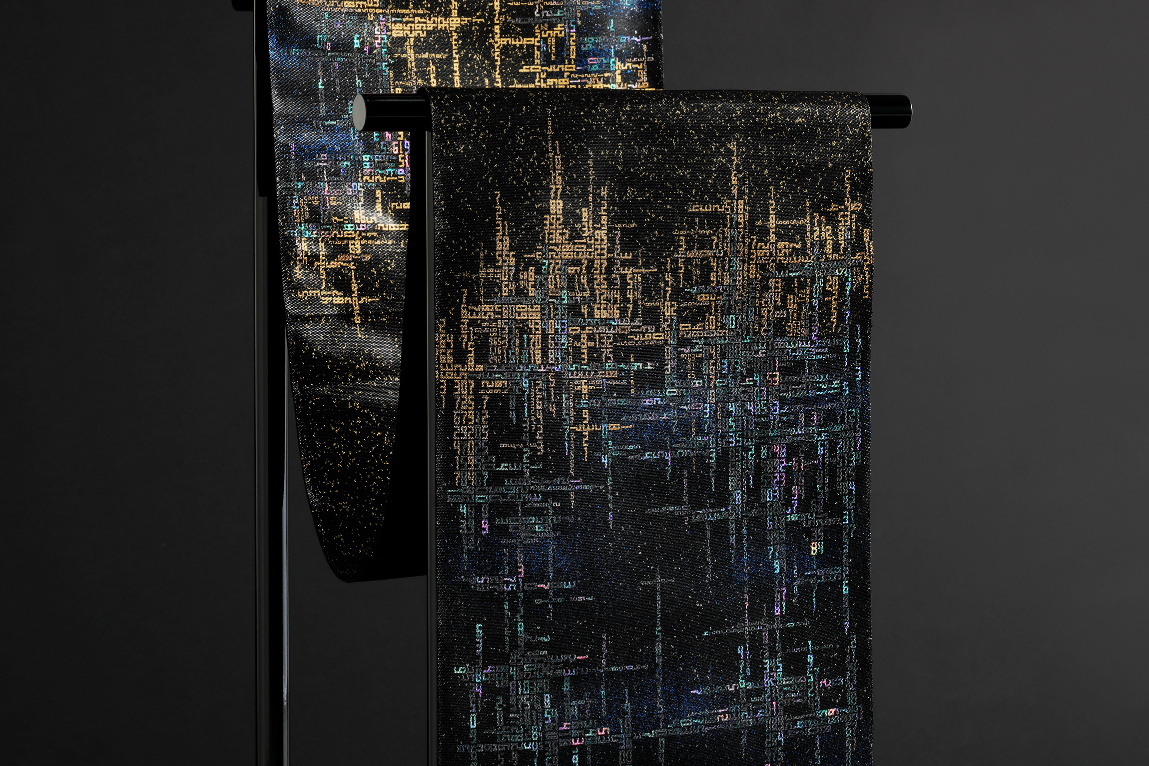 日本古来の技法にレーザーカット等の現代技術を織り交ぜた作品は、「マトリックス螺鈿」や「サイバー螺鈿」と表現されるようにサブカルチャーの影響を受けたシャープな文様によって神秘性を宿しています。その表現は、現代と過去を内包した樹液の漆黒と貝の輝きで、見るものに新しい世界を与えます。