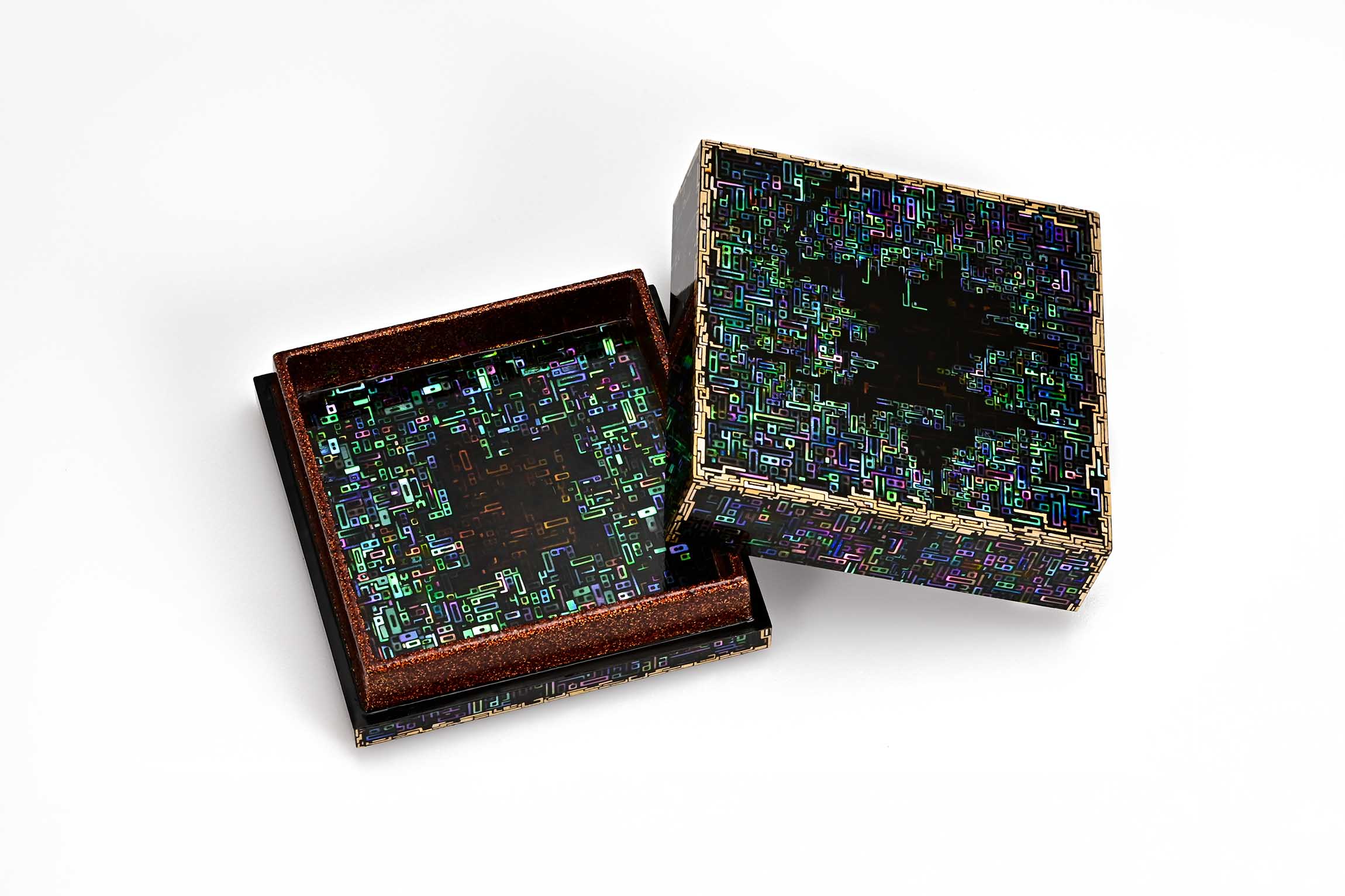 タイトル:青貝迷宮回路図香合サイズ:W57 × D57 × H21 (mm)