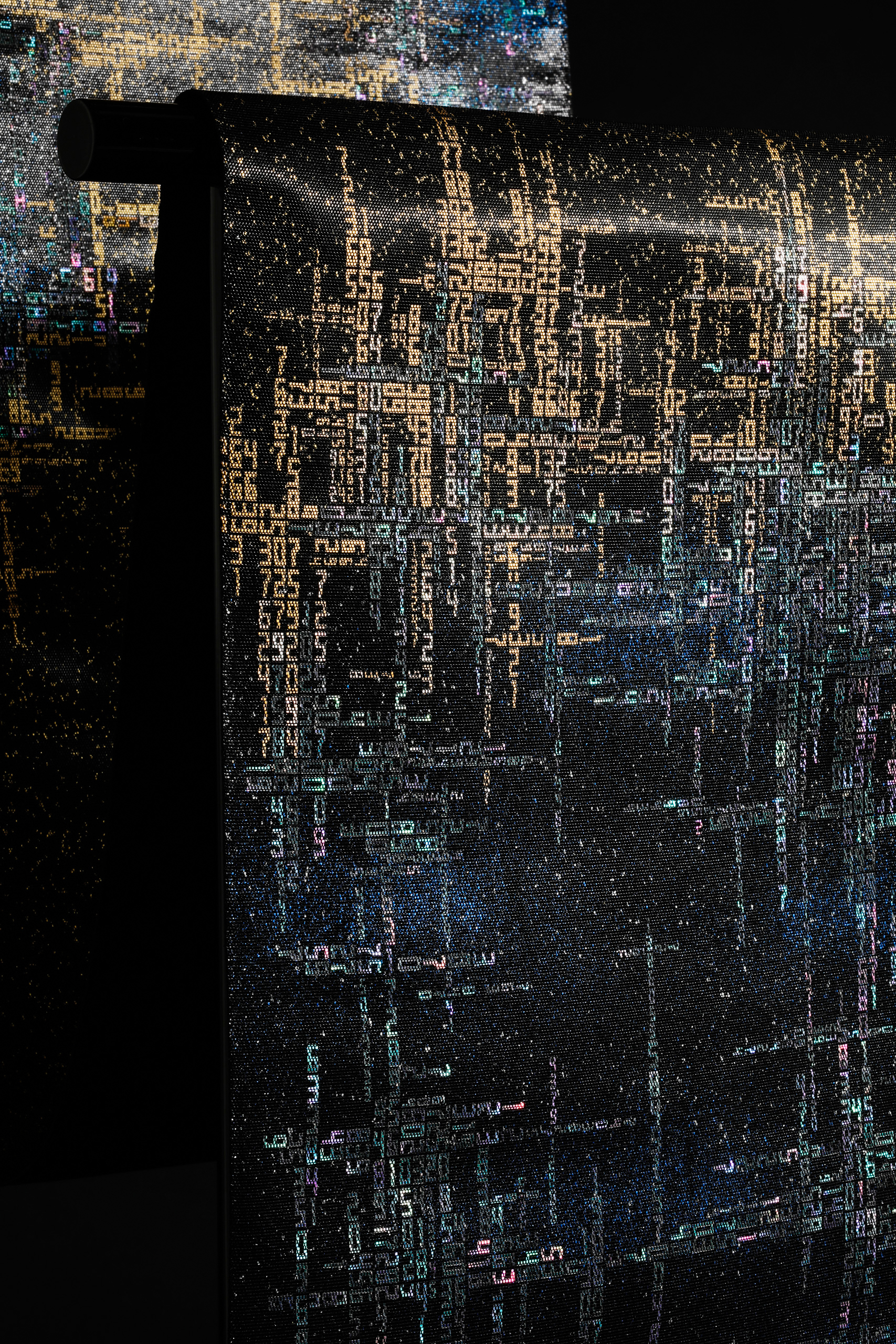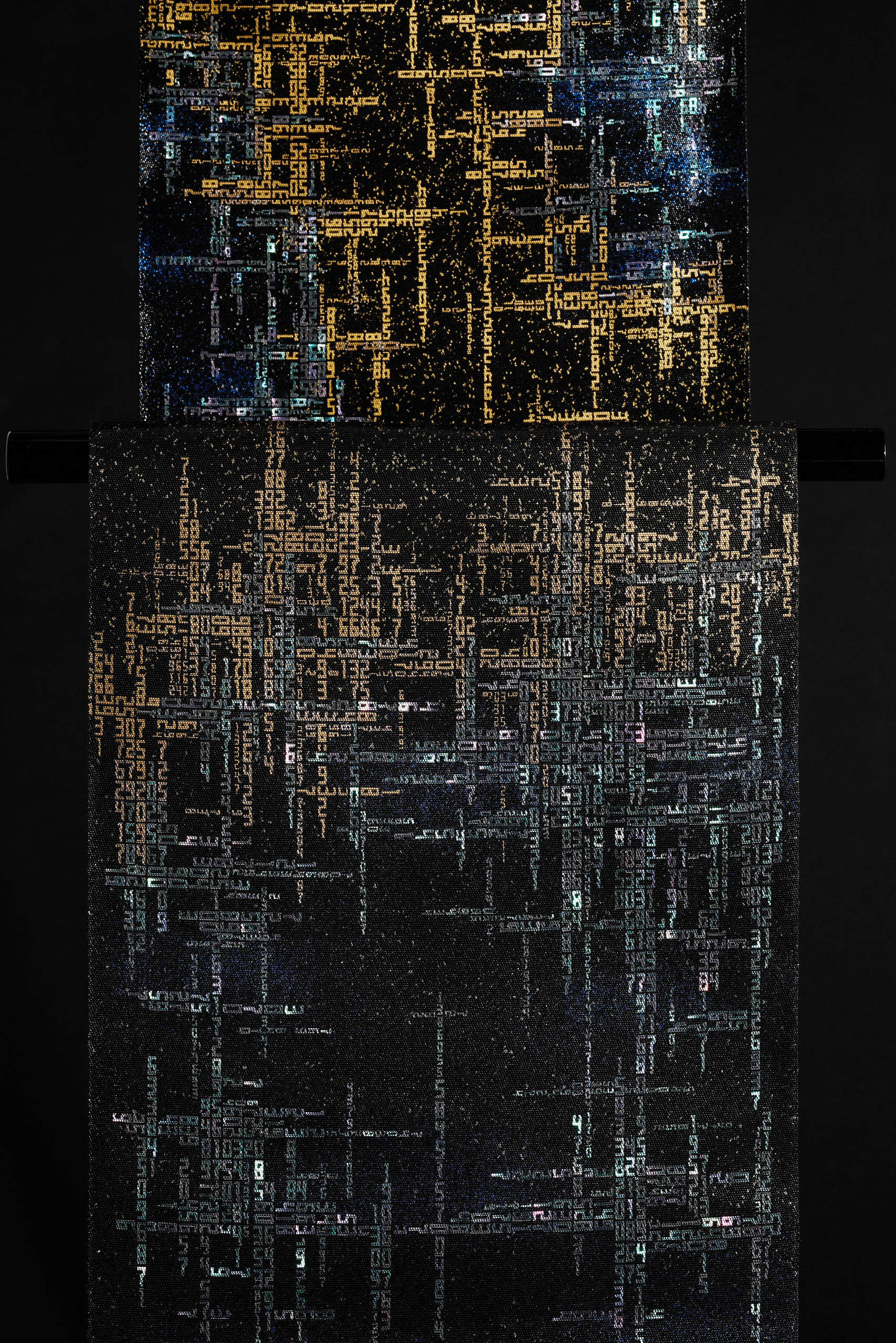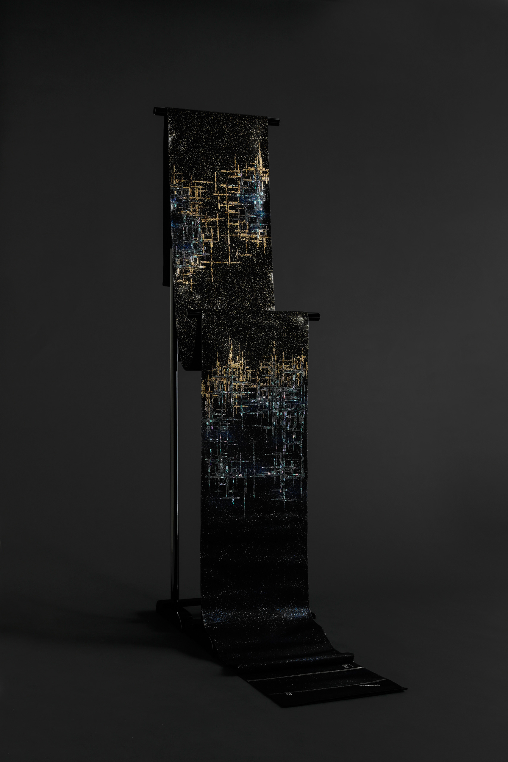 夜光金彩螺鈿帯「極光」 Play Pause Unmute Muteタイトル:夜光金彩螺鈿帯「極光」サイズ:W31 × D0.5 × H 470±4.5 (cm)トップ » 螺鈿帯の作品 » 夜光金彩螺鈿帯「極光」